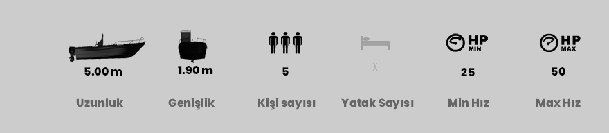 Safter 500 Sport polyester tekne size bu güvenliği sağlıyor. Çözüm ortakılığı yaptığımız motor markalarından isteğinize göre seçeceğiniz dıştan takmalı deniz motorları ile rüzgarı hissedeceksiniz. 500 cm uzunluğa, 190 cm genişliğe, 35 cm drafta ve 350 kg boş ağırlığa sahip 500 Sport fiber tekne, görevini güvenli bir şekilde yerine getirmek için 45 senelik Safter deneyimi ve güvencesiyle sizler için tasarlandı. Merkezde bulunan komuta mahali sürücü için net bir görüş ve dümen hakimiyeti sağlamasına yardımcı olur. Yolcular tekneye arka taraftaki teleskopik merdivenle güvenli bir şekilde giriş sağlarlar. 500 Sport modelimizde sürücü koltuğunda olmaktan keyif alacaksınız. Ergonomik bir dümene ve kolayca erişebileceğiniz gaz koluna, elektrikli çapa sistemine sahiptir. Teknenin arka tarafına bulunan krom sosisli sırtlık ile birlikte sırtınızı yaslayabilecek, ön taraftaki oturma alanı ve yüksekliği ayarlanabilir masa ile tıpkı hız gibi rahatlığı da hissedebileceksiniz. Seyir hızında veya demirlemiş vaziyetteyken ön taraftaki masanın yüksekliğini ayarlayarak üstüne minder koyabilecek ve oturma alanınızı rahatça uzanabileceğiniz bir güneşlenme alanına dönüştürebileceksiniz. Komuta mahallinin önünde bulunan oturma alanı sayesinde misafirlerinizle yüzyüze iletişime geçebilecek ve sohbete rahatça eşlik edebileceksiniz. Motor kapalı iken tentenizi takabilecek hatta balık tutmak istediğinizde tuttuğunuz balıkları teknede bir (1) adet bulunan livarda saklayabileceksiniz. Kişisel eşyalarınızı ve minderleri kötü hava koşullarında teknede bulunan saklama alanlarında güvenle muhafaza edebilirsiniz.